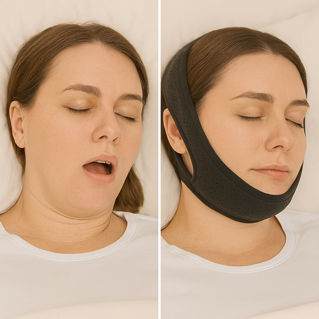 Silent Sleep, Naturally. The Snorelux Anti-Snoring Strap gently supports your jaw to help keep your airway open during sleep. Designed for comfort and effectiveness, it encourages natural nasal breathing, reducing snoring without any complicated devices. Lightweight and adjustable, it stays securely in place all night, so you can rest easy  and wake up refreshed.